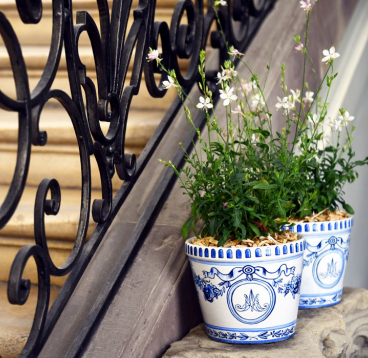 One hundred pots decorate the balcony and stairs of the Maison de la Reine du Hameau in Versailles.